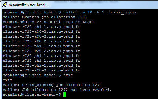 salloc -n 10 -N 2 -p erm_copro