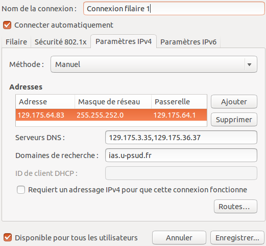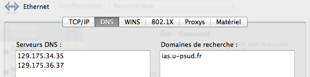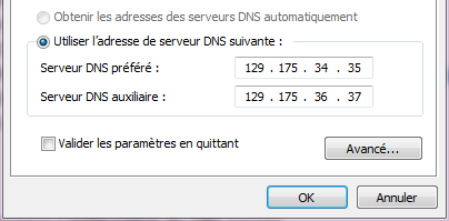 Note : si votre poste est configuré avec le DNS 129.175.64.15, il faut remplacer cette adresse par les 2 précédentes