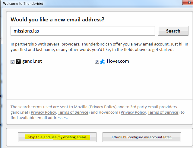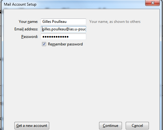 Lorsque vous créez votre nouveau compte sous thunderbird, sauter l'étape de demande de compte (le vôtre existe déjà à l'IAS)