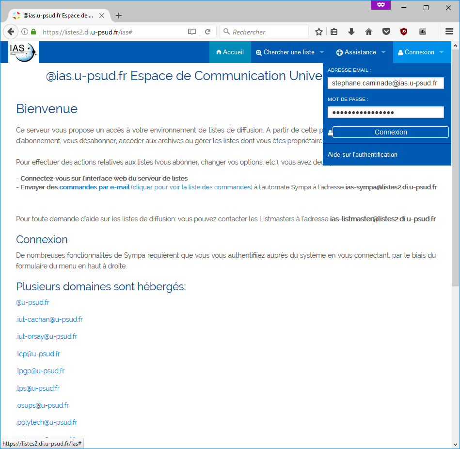 Vous devez vous authentifier avec l'adresse mail @ias.u-psud.fr, MAIS avec le mot de passe ADONIS.