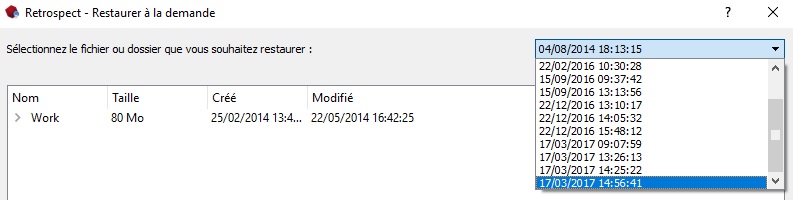 Choisissez la date à partir de laquelle vous voulez restaurer les fichiers puis les fichiers et lancez la restauration.
