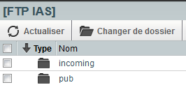 il existe 2 dossiers : pub et incoming Vous ne pouvez écrire que dans ces deux répertoires.
